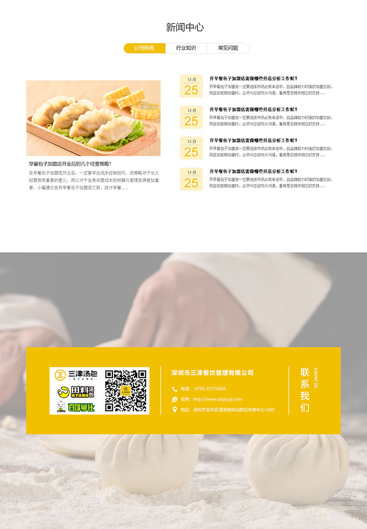 深圳市三津餐飲管理有限公司,成立于2014年12月24日。旗下有三津、田料和百味粵比等多個連鎖品牌。截止2019年10月加盟門店數超2000家,每天為超過100萬消費者提供早餐服務,集團2019年巨資籌建投產的三津產業園是全國產能最大的科技化化面點工廠之一,園區面積6.8萬平方米,2019年11月25日進駐成都市場,成立成都分公司,2020年5月三津與興糧品戰略合作簽約,2020年5月31日進駐衡陽市場,三津已成為手工包子品牌領導者和龍頭企業。